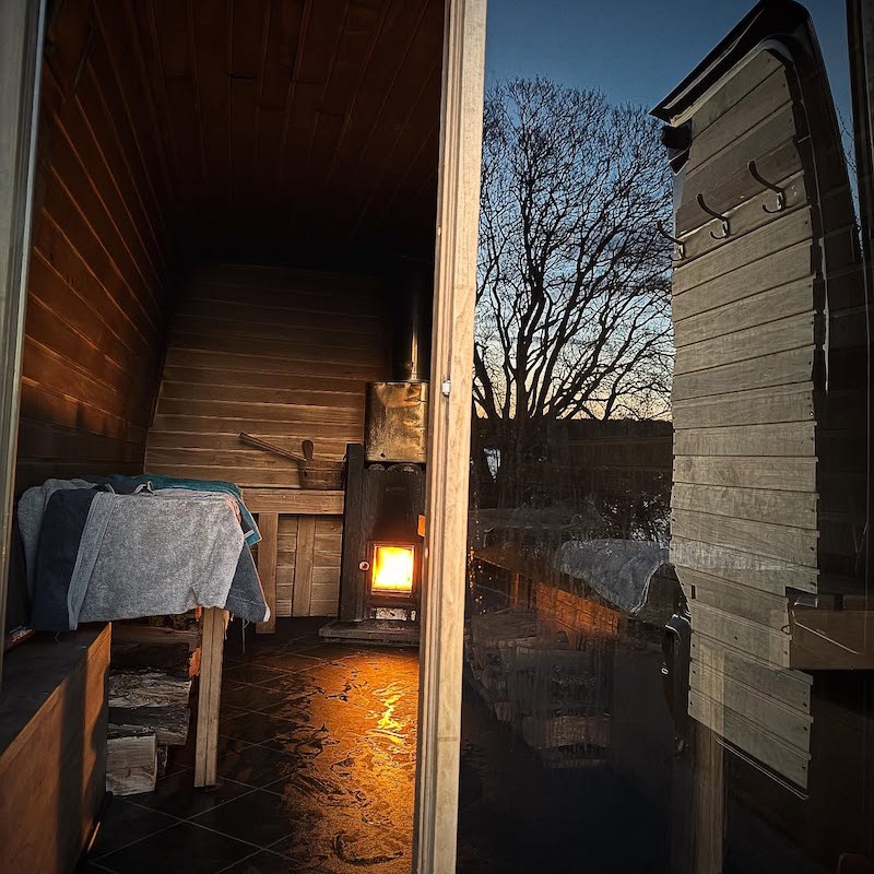 Saunagusen varer en time, opdelt i tre sessioner, med mulighed for kolde dyp og væskeindtag mellem hver. Og der er op til 9 pladser i sauna'en.